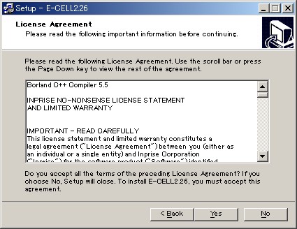 まずは、E-CELL2.26のインストーラを立ち上げましょう。