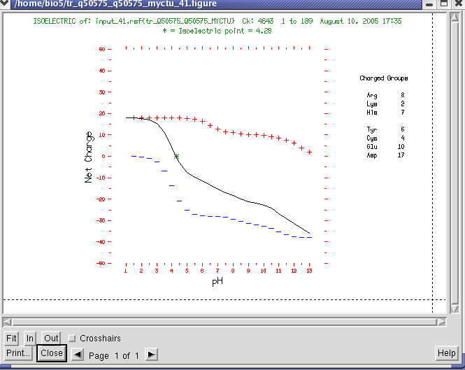 Isoelectric plots the charge as a function of pH for any peptide sequence.